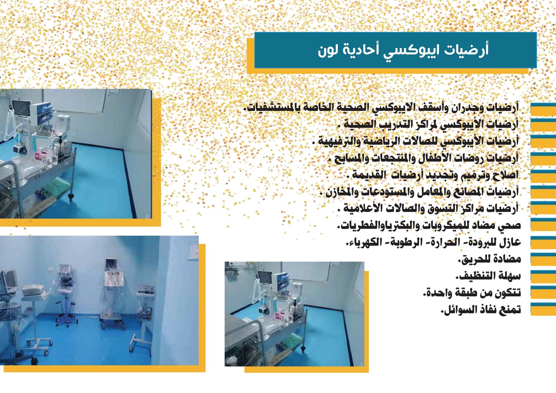 هي أرضيات مصنوعة من مادة الإيبوكسي تُسكب على الأرضية بشكل متجانس وموحد اللون، لتصبح سطحاً مستوياً، مقاومًا للبقع والصدمات، وسهل التنظيف.