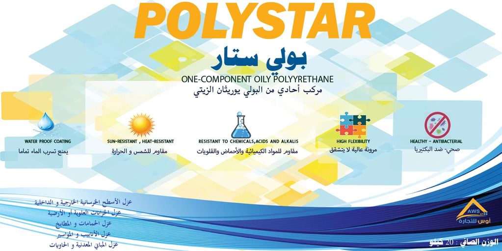 بولي ستار (POLYSTAR) هو البولي يوريثان الزيتي عالي الجودة الذي يجمع بين القوة والمتانة والمرونة. صُمم ليمنح أسطحك حماية كاملة ضد الرطوبة، التآكل، والتشققات، مع لمسة نهائية أنيقة تدوم طويلًا.